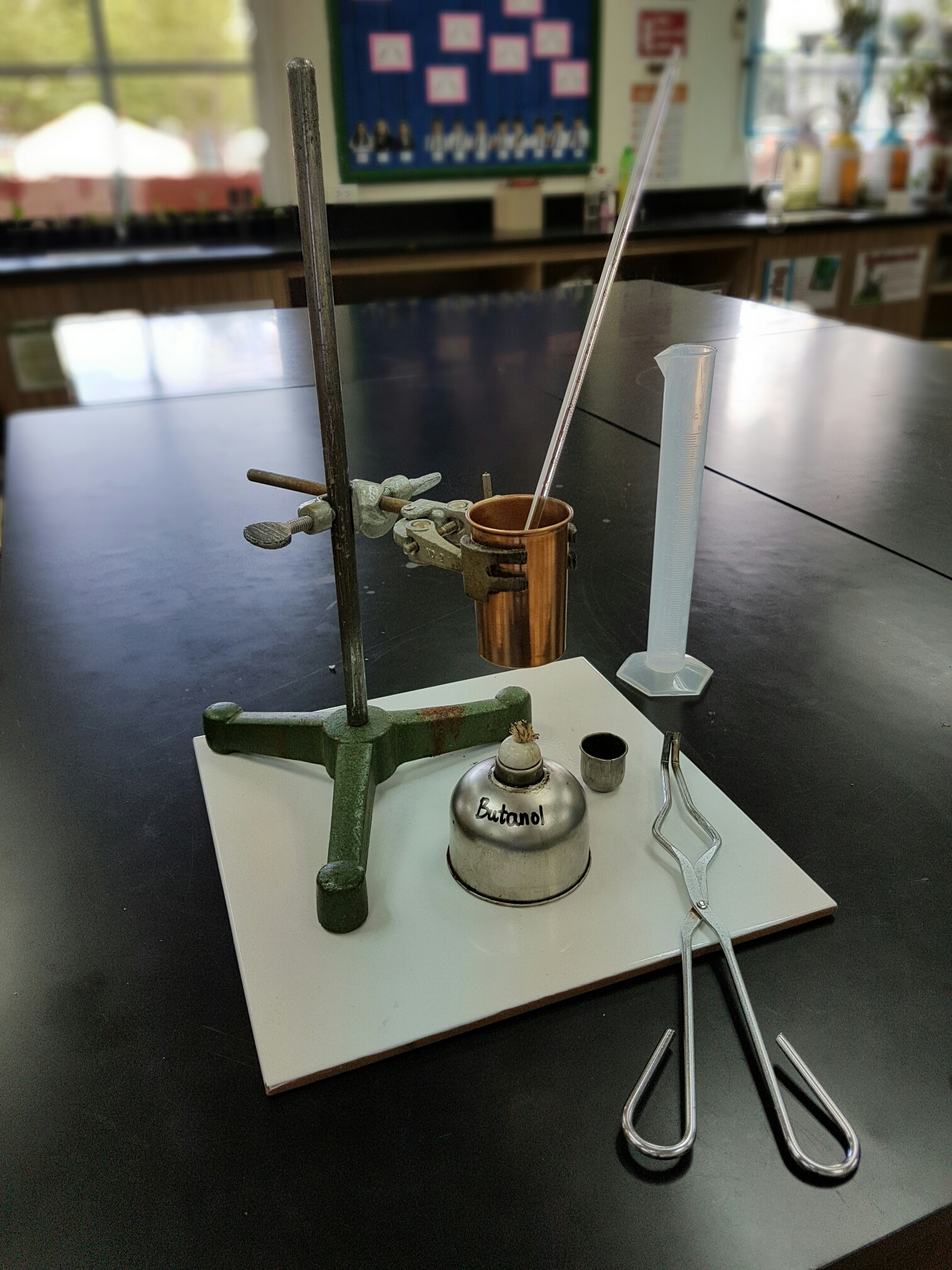 - Weigh the spirit lamp, including the cap, as accurately as possible and record the mass in a Results Table.