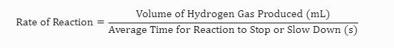 - Measure the volume of hydrogen gas collected in each reaction.